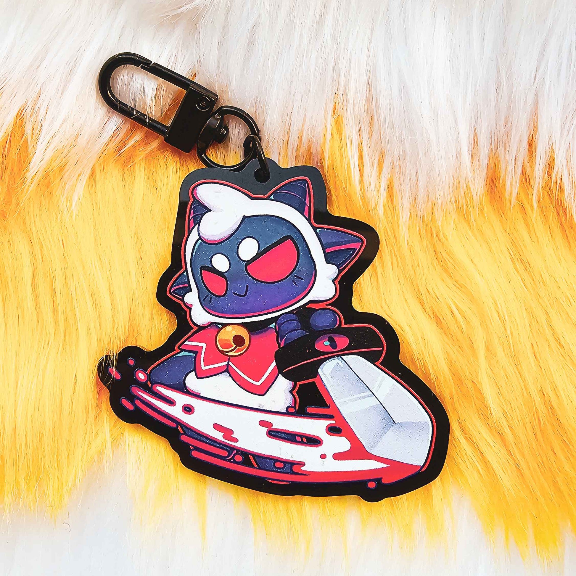 A 2.5 inch Black Acrylic keychain with black clip