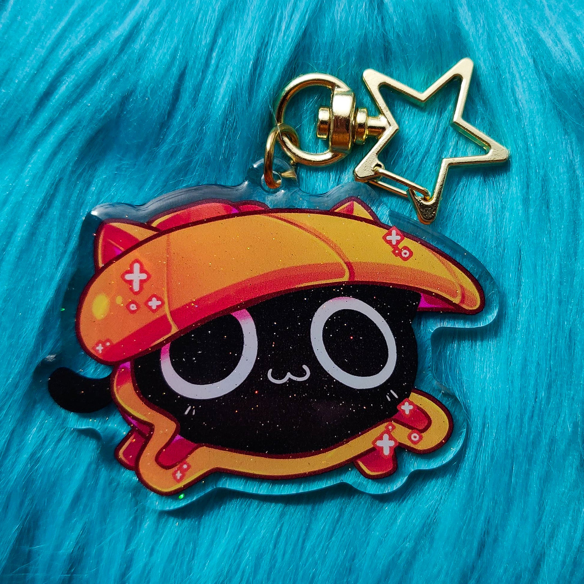 A 2.5 inch epoxy with glitter key chain with star-shaped clip